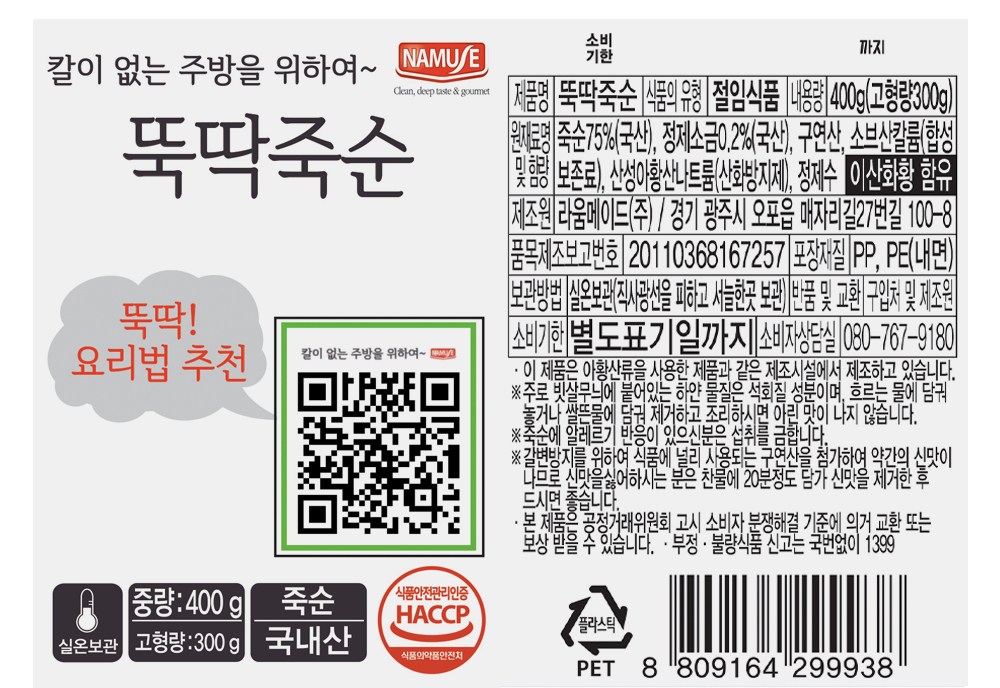 손질되어 있어 간편한 뚝딱 죽순
