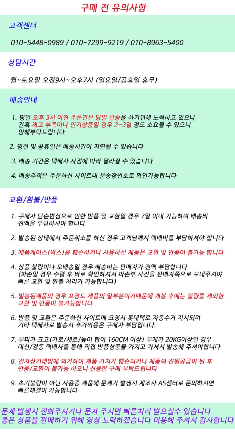 - ㆍ교환/반품에 관한 일반적인 사항은 판매자가 제시사항보다 관계법령이 우선합니다.