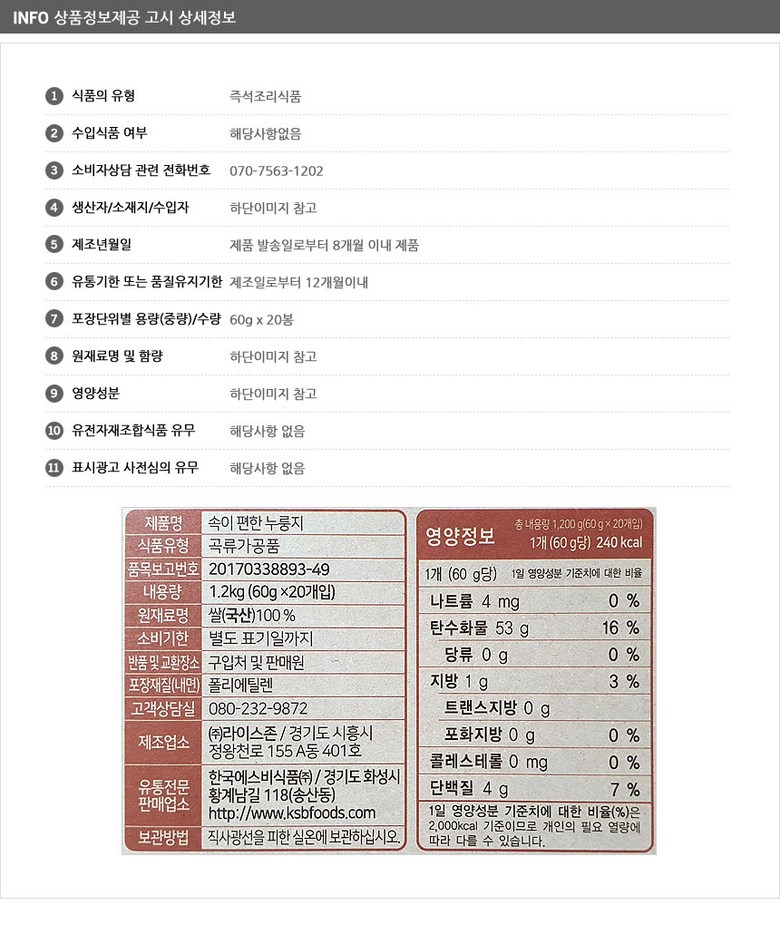 | 제품명 | 상품 상세페이지 참조 | 식품의 유형 | 상품 상세페이지 참조 |